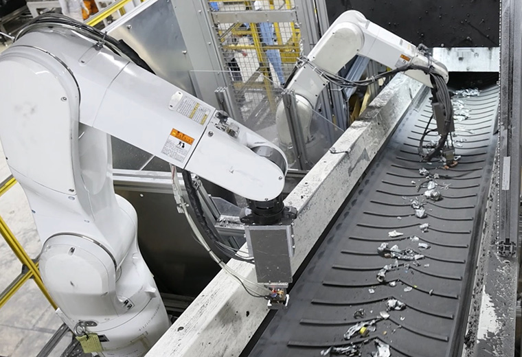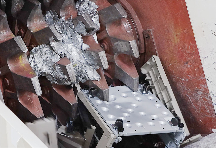 製品や使われている素材の特性に応じた材料選別装置を自社開発することで、作業の効率化と高精度な材料分別を両立しています。