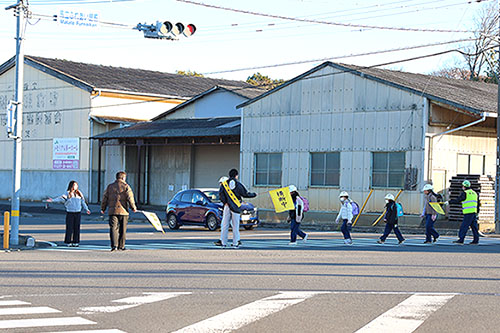 立哨ボランティア活動は、弓馬田小学校の小学生が安全に登校できるよう、交通量の多い交差点の横断をサポートするために行っているものです。当日はあいさつや声かけを行いながら、小学生を安全に見送りました。