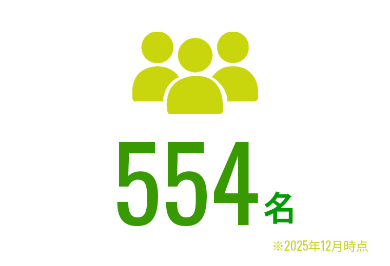 男性326名、女性228名。20~30代の男女比率は49%/51%。子育て世代も働きやすい制度が整っています。