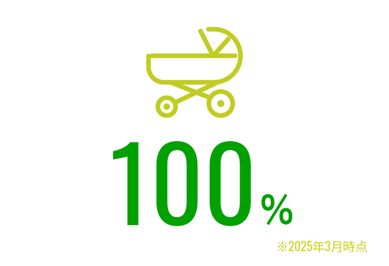 育休の取得がしやすい雰囲気があり、女性だけでなく2024年度は男性の取得も100%となりました。