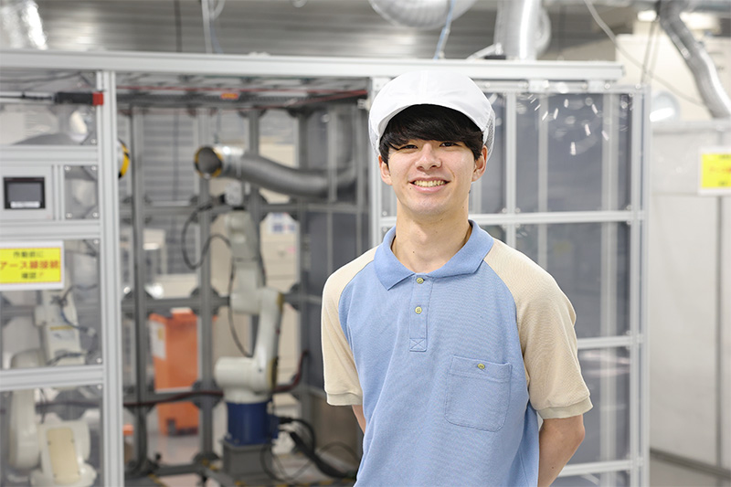 入社後いざ実践となると、学生時代に学んだ知識を生産設備にどう活用すれば良いかわかりませんでしたが、業務で経験を積み、先輩の指導を受けたことで、技術の活用方法の理解が増してきたと感じています。初めて新入社員の指導を担当することとなり、人に教えることに対して難しさも感じていますが、徐々に成長していく姿を見ると嬉しく思いますし、自分の成長にもつながっていると感じます。