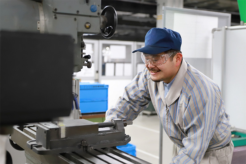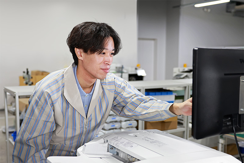 製品技術を担当する部門に所属しています。再生複合機や製品サービスパーツ生産工程で使用する生産設備の導入を担当しています。生産性および製品品質の向上を目的に、設計から改善、保守業務に日々取り組んでいます。またブラザーシスター制度のブラザー(担当指導員)の担当となり、新入社員の教育も行っています。